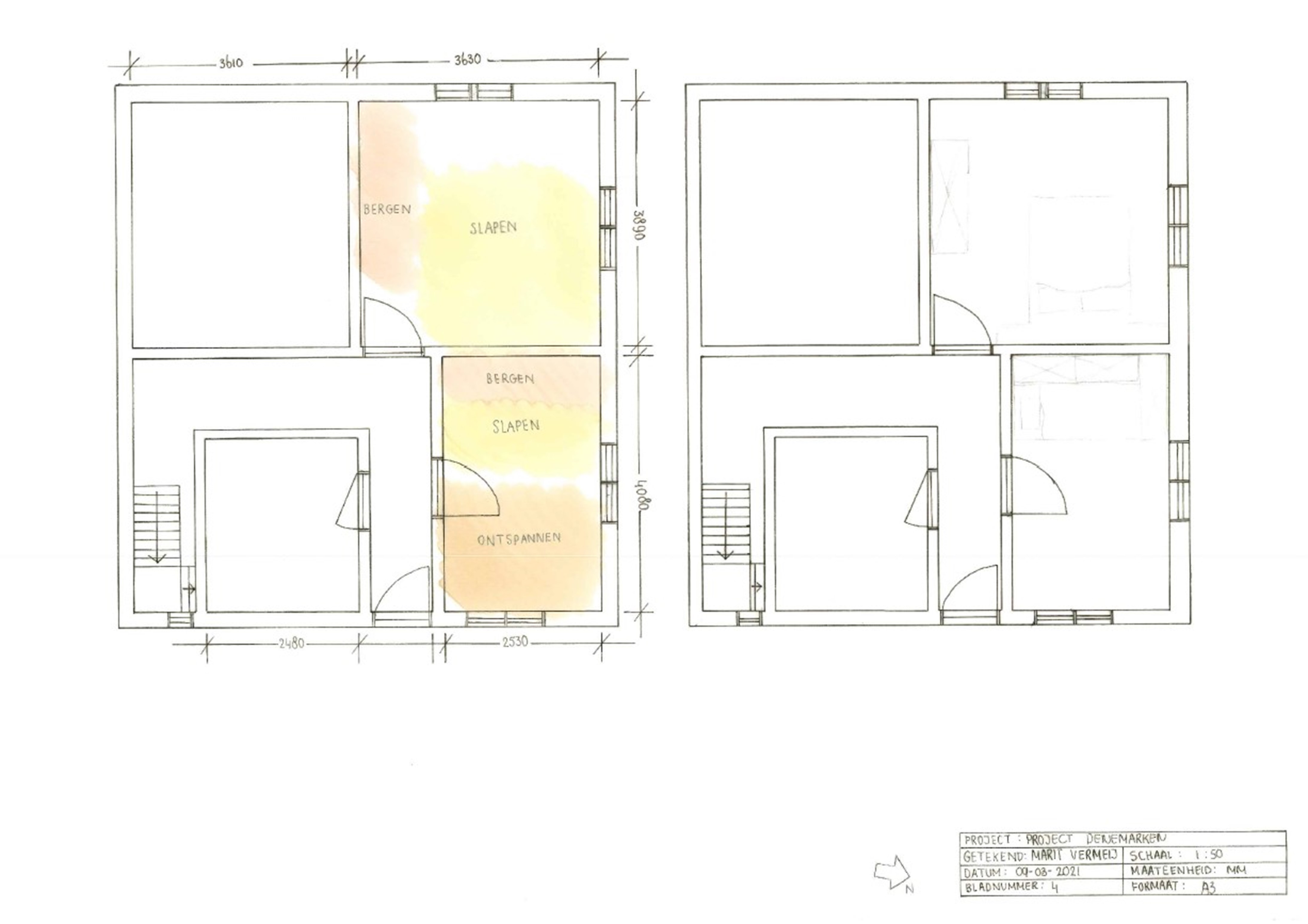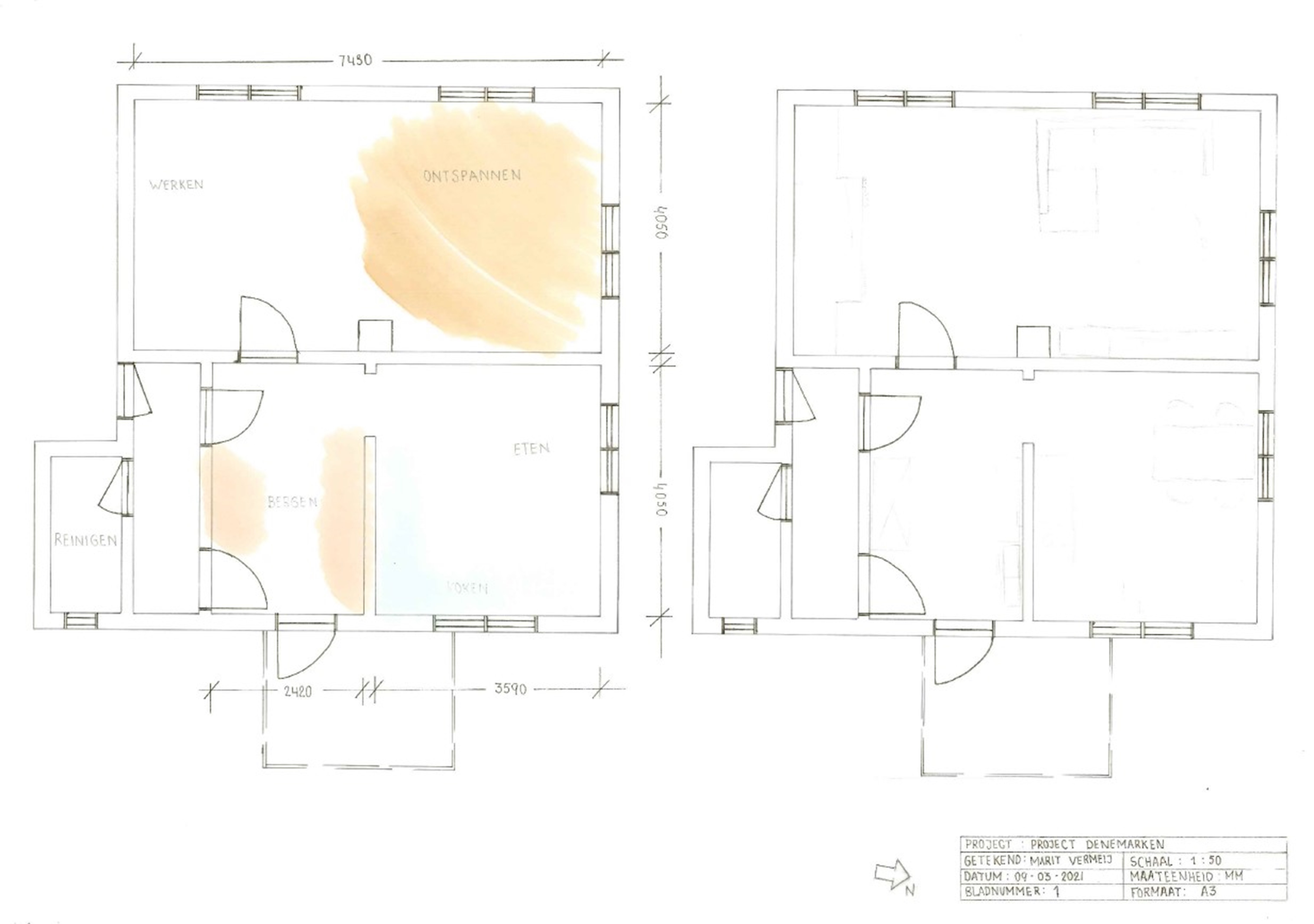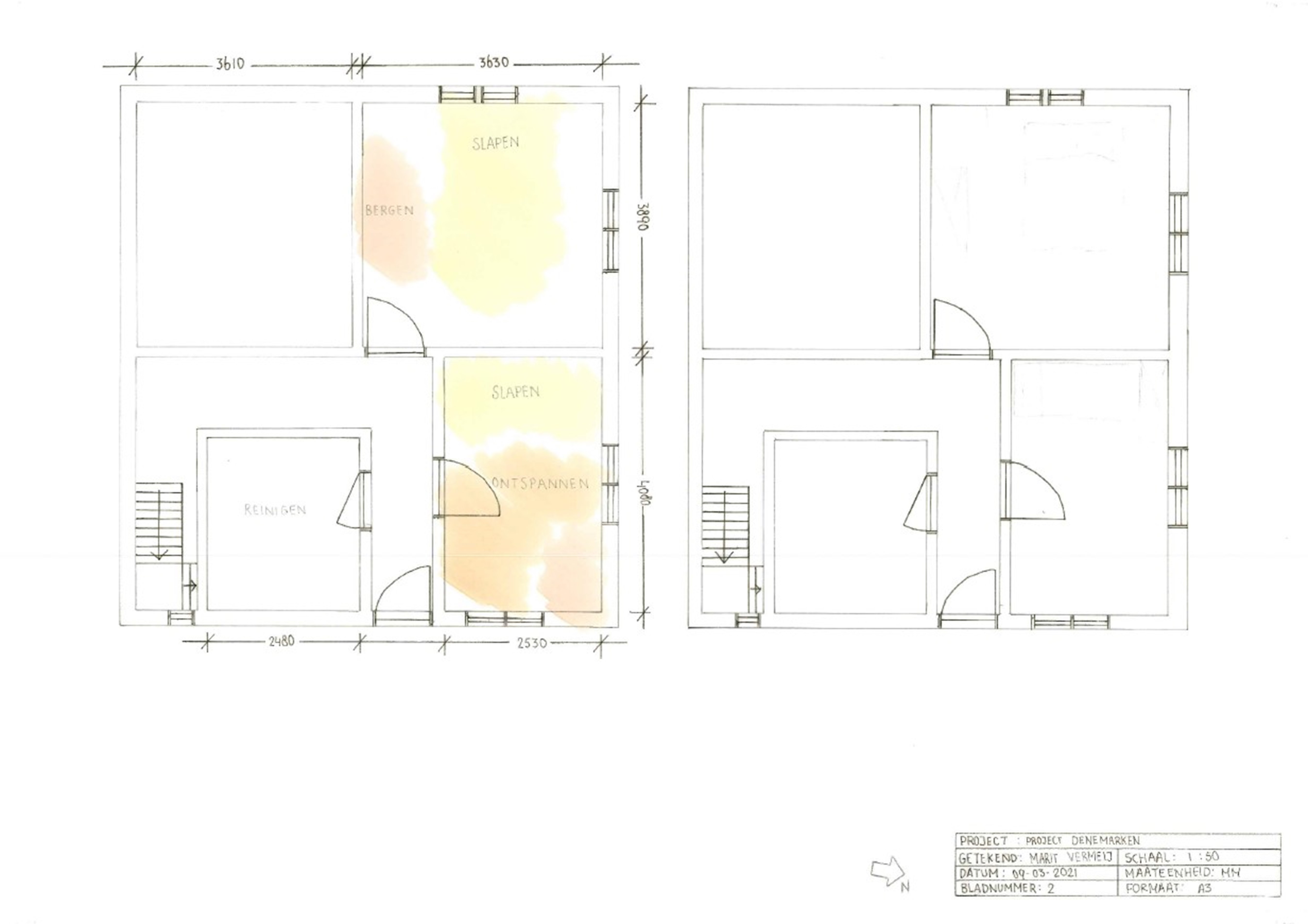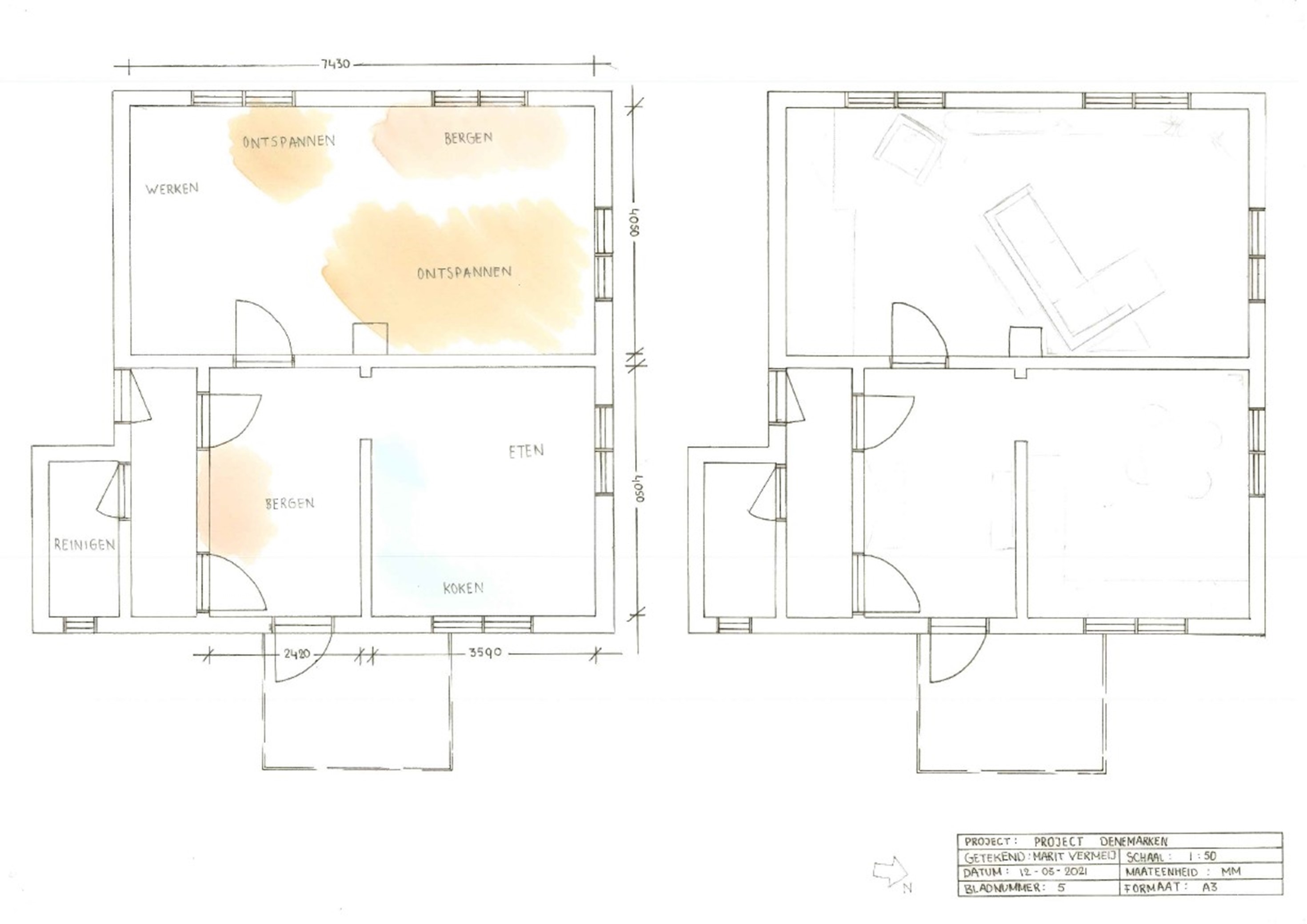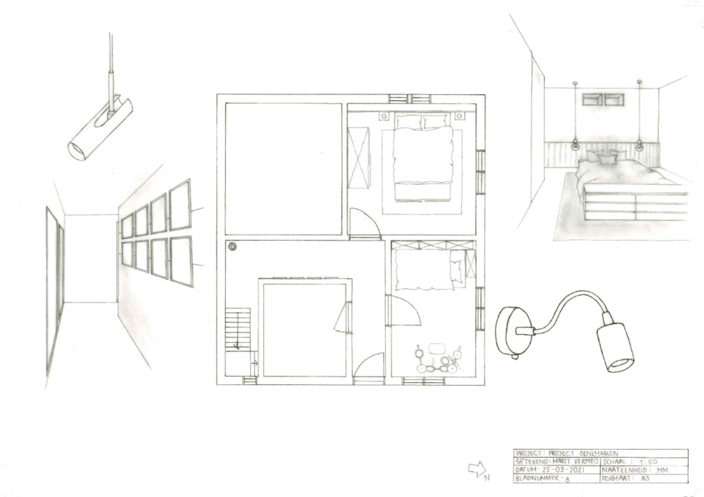 Vlekkenplannen & Indelingsschetsen worden gemaakt om ideeën te bedenken voor de ruimte. Zo komen er meerdere ideeën, waar uiteindelijk een goed en mooi interieur uit komt.