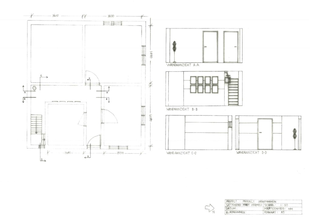 Uiteindelijk met een paar kleine aanpassingen is er een definitief ontwerp gemaakt. Hierbij heb ik ook aanzichten gemaakt van de muren om een duidelijker beeld te geven wat er gebeurt met de ruimte.