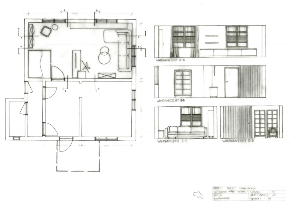 Uiteindelijk met een paar kleine aanpassingen is er een definitief ontwerp gemaakt. Hierbij heb ik ook aanzichten gemaakt van de muren om een duidelijker beeld te geven wat er gebeurd met de ruimte.